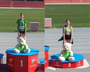 27 febrero, 2026 | Jesús En el Campeonato Provincial de la categoría sub14 celebrado en La Nucia el pasado 22 de febrero, dos de nuestras atletas consiguieron ganar medalla y subir al podium. Emma Ramos se alzó con la medalla de oro en la prueba de 60m vallas con una marca de 10”32 que, además de ser su mejor marca personal, de momento también es la mejor marca de la categoría en toda la comunidad Valenciana. Por otro lado, Olivia Vega que obtuvo la medalla de bronce en lanzamiento de peso (3kg), con una marca de 7m 16 cm, rozando su mejor marca de la temporada que está en 3m 19cm, siendo de atleta de primer año y compitiendo contra niñas un año mayor. Olivia, Bronce en lanzamiento de peso Emma, Oro en 60m Vallas